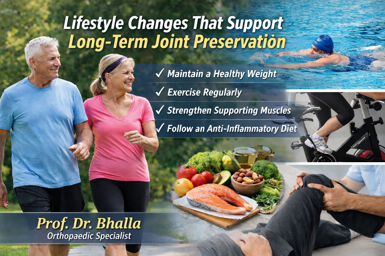 At Prof. Dr. Bhalla’s clinic, we believe that successful joint preservation extends beyond medical procedures. A comprehensive plan that integrates lifestyle guidance, physiotherapy, and advanced treatment ensures the best long-term outcomes.